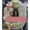 พวงหรีดดอกไม้สด โทนขาวเขียวชมพู